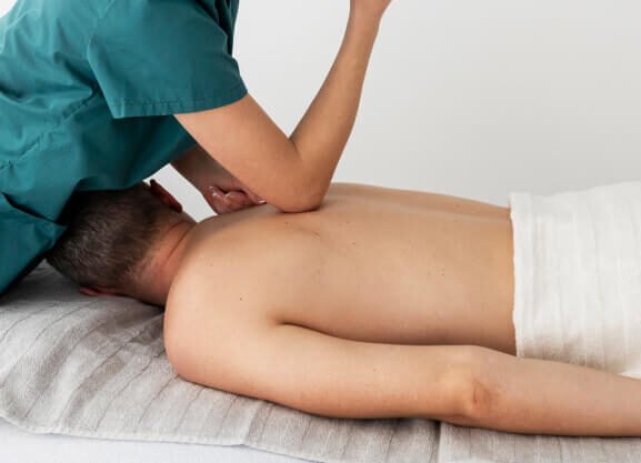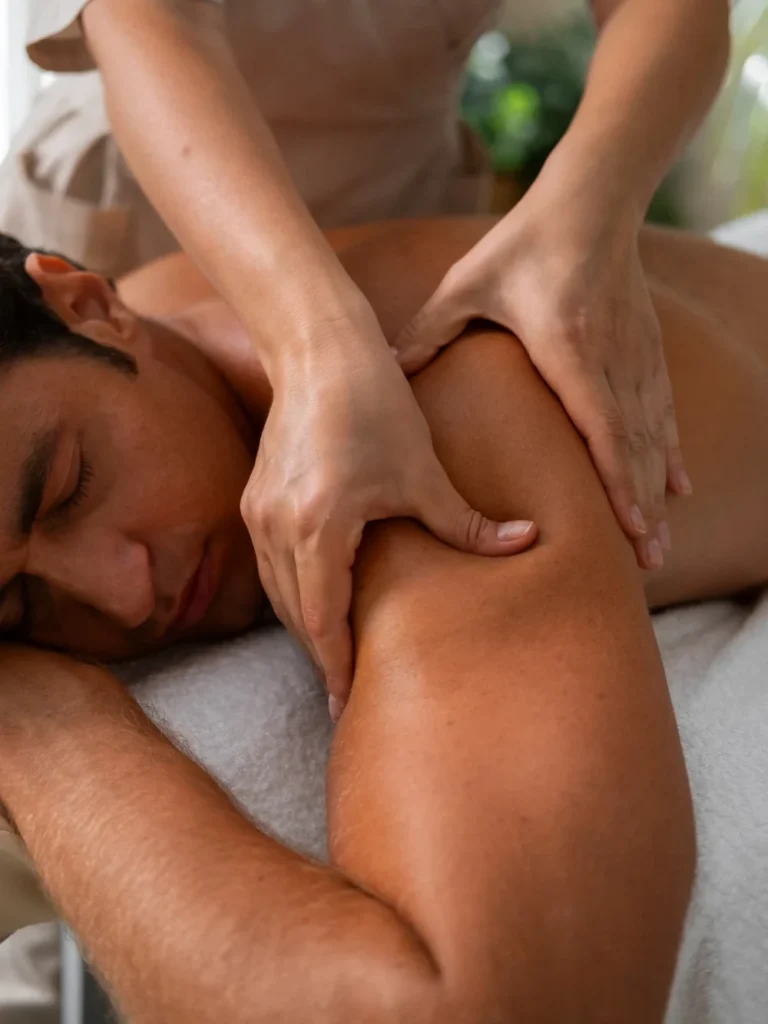 A strong therapeutic massage that targets deep muscles and knots to relieve chronic pain, stiffness, and muscle tension.